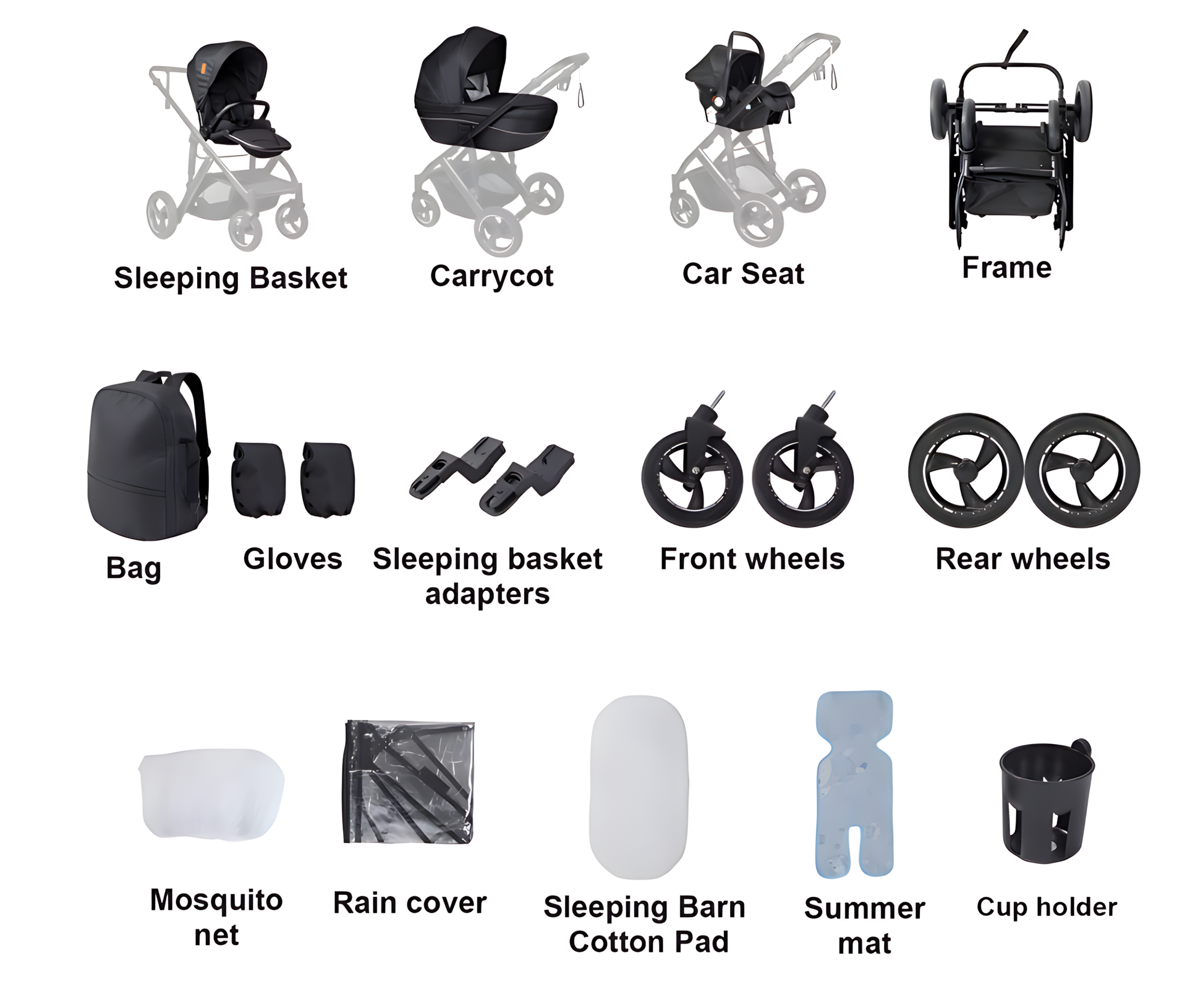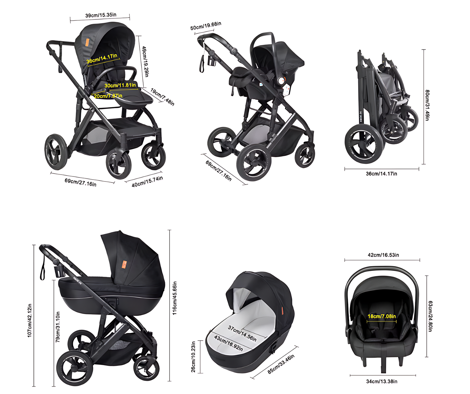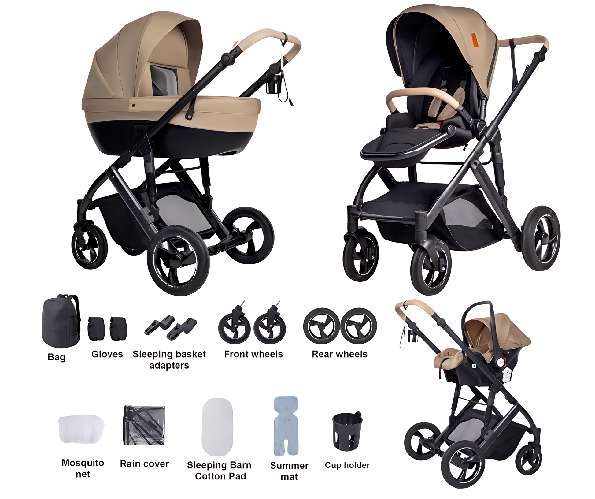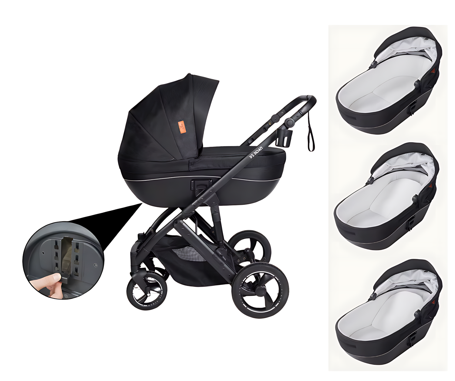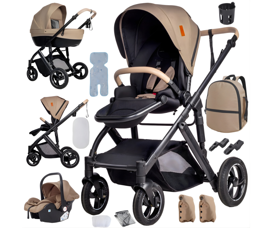 Täydellinen 3-in-1 ylellinen setti. Jokaiseen tilaukseen sisältyy runko, turvaistuin, vaunukoppa ja kaikki välttämättömät lisävarusteet toimitettuna kahdessa turvallisessa paketissa.