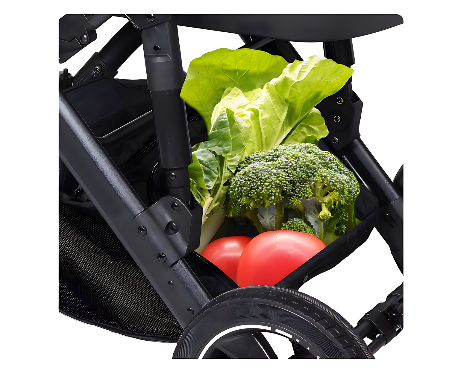 Erittäin suuri säilytyskori, jossa vahvistettu pohja painaville esineille. Sisältää kätevän yhden jalan jarrujärjestelmän maksimaalisen turvallisuuden ja hallinnan takaamiseksi.