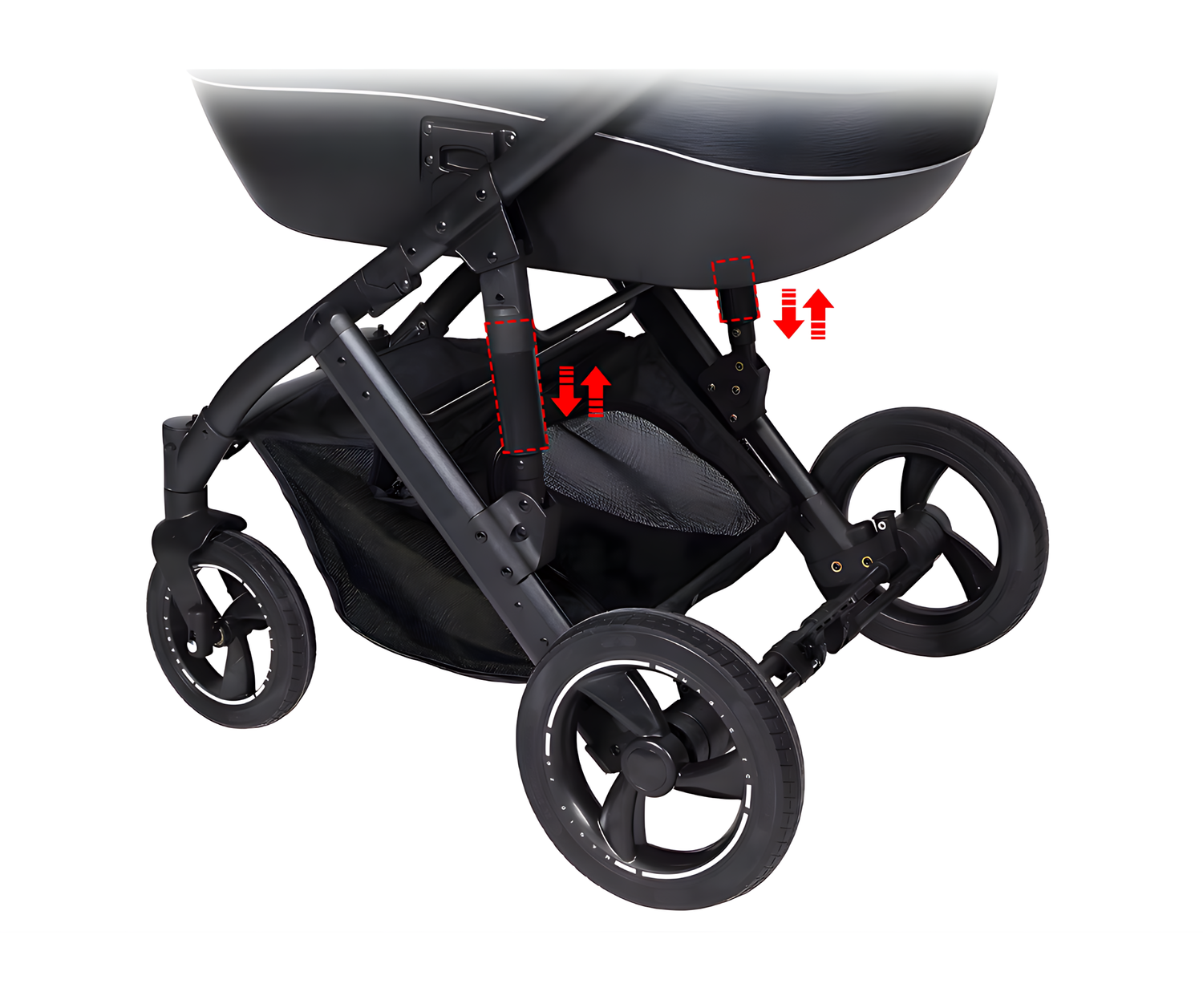 Integroitu runkojousitus vaimentaa iskuja epätasaisilta teiltä, mikä takaa vauvalle rauhalliset unet.