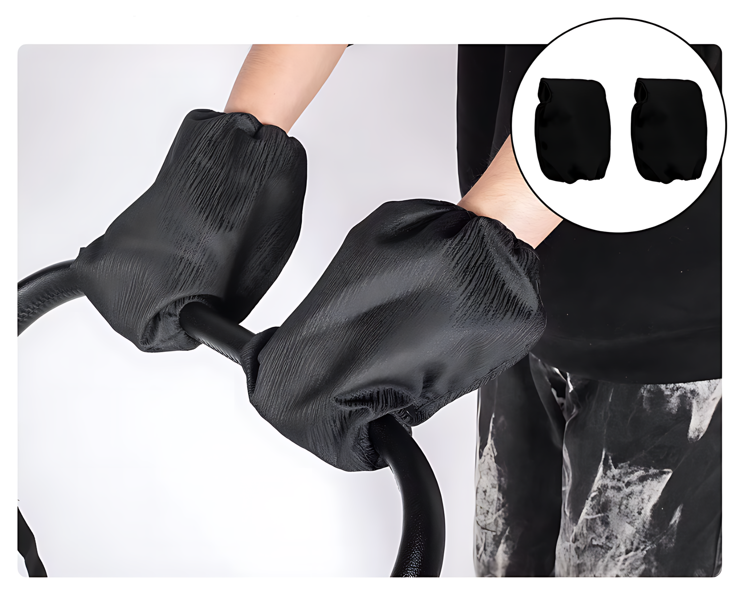 Pehmeät ja lämpimät talvihanskat, jotka kiinnitetään ohjaustankoon. Pitää vanhemman kädet suojattuna kylmältä ulkoilulenkkien aikana.