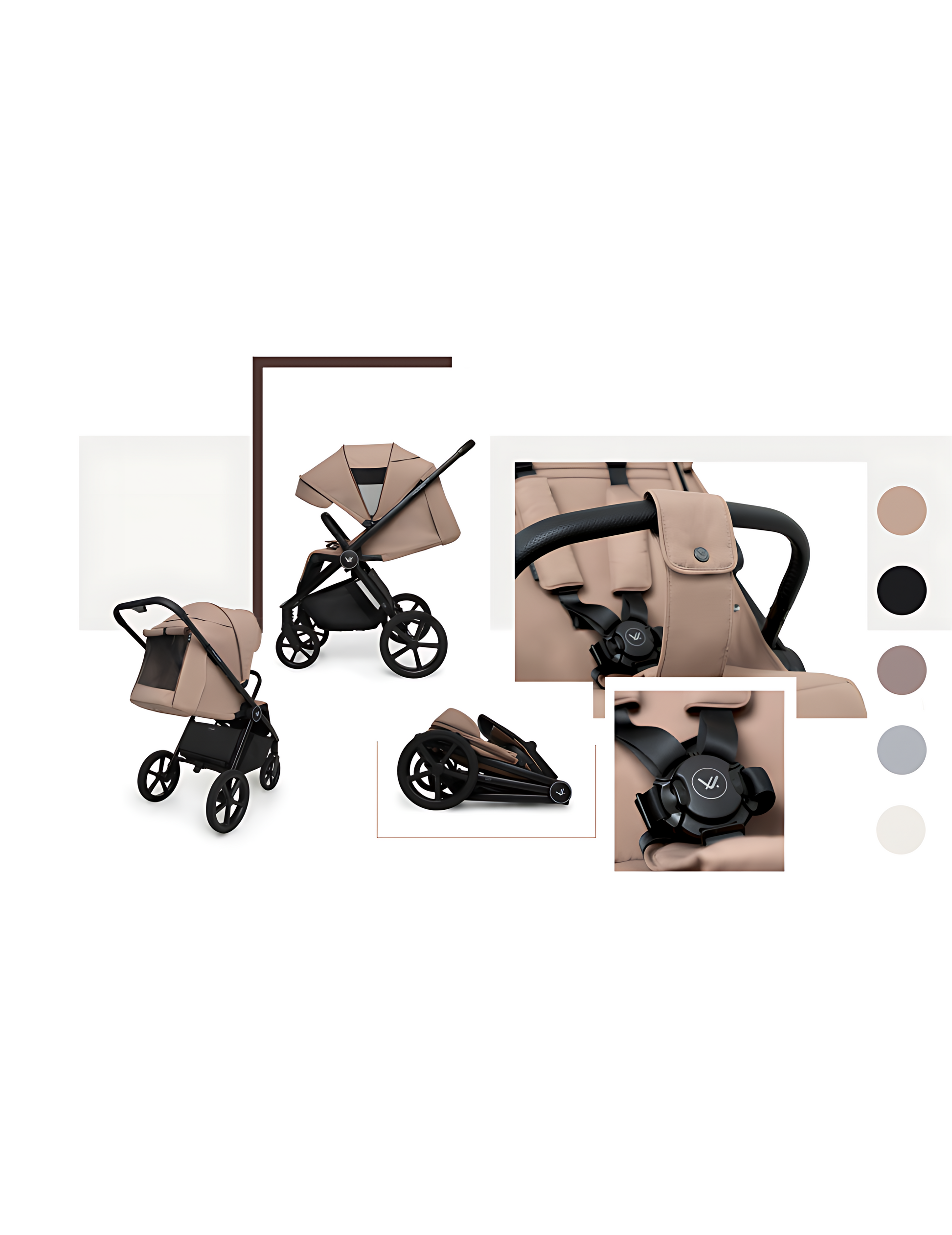 Pehmeä ja miellyttävän tuntuinen kangas tuo rattaisiin tyylikkään ulkonäön ja korostaa materiaalien laatua.